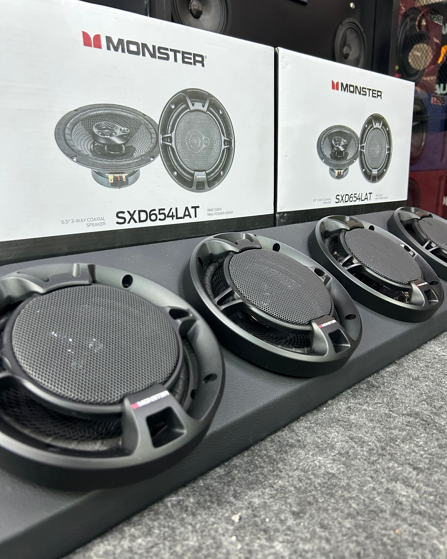 4 BOCINAS MONSTER COAXIALES 6.5 + BASE VINIL / 060226 / HAR